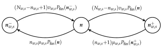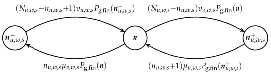 Based on Figure 2 and the reversibility of the corresponding Markov chain, we have a local balance equation, for the adjacent states and :