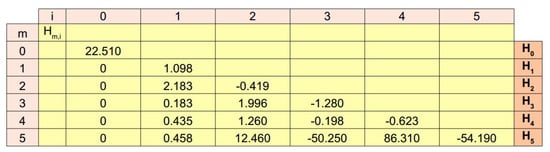 where were numeric coefficients related to the summation index . These coefficients, which were now not related to the amount of experimental information, were condensed into the vector. In this work, for the sake of simplicity, only the functions related to values of m ranging from 0 to 5 were explored (see Appendix A about how to build these functions).