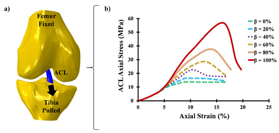 - Limbert, G.; Taylor, M.; Middleton, J. Three-dimensional finite element modelling of the human ACL: Simulation of passive knee flexion with a stressed and stress-free ACL. J. Biomech. 2004, 37, 1723–1731. [Google Scholar] [CrossRef]