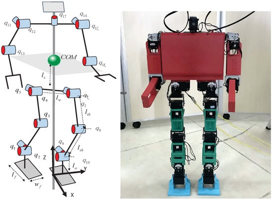 - Yu, Z.; Zhou, Q.; Chen, X.; Li, Q.; Meng, L.; Zhang, W.; Huang, Q. Disturbance rejection for biped walking using zero-moment point variation based on body acceleration. IEEE Trans. Ind. Inform. 2018, 15, 2265–2276. [Google Scholar] [CrossRef]