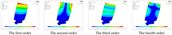 First four order natural frequencies and mode shapes of the Stage 1 and Stage 2 blades.