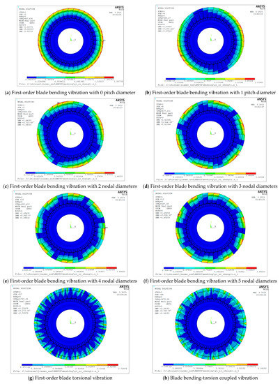Figure 13 shows the mode diagram of the typical order of the second-stage bladed disk system.