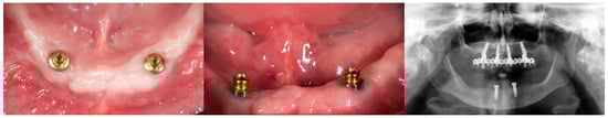 A recent meta-analysis demonstrated no statistically significant differences between splinted and unsplinted attachment systems with regard to marginal bone loss, complications, and implant survival rate []. For the latter, unsplinted implants should be considered the gold standard. Several attachment systems have been developed [,]. Among these, retentive anchor with titanium matrix and locator may be a better choice from a financial point of view, taking into consideration the initial low cost of the components and also the reduced number of complications. In a long term retrospective analysis, implant overdenture showed high implant and prosthetic survival rates, low complications, high patient satisfaction, and good biological parameters. Within these, low-profile attachments showed lower number of complications [].
