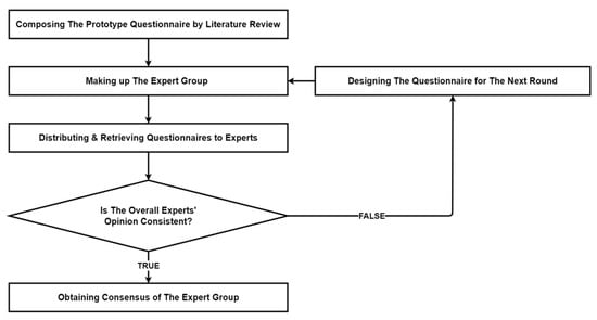 Helmer and Dalkey first developed the Delphi Method in 1963. This is a structured, systematic, and communicative approach that relies on a panel of experts’ subjective opinions and judgments to obtain objective recommendations or comments on a specific topic [40]. Later, in 1995, Murry and Hammons proposed the Modified Delphi Method. Figure 3 compares the Modified Delphi Method with the original Delphi Method. This modified version not only reduces the cost of designing and issuing these questionnaires to the experts but also improves objectiveness because the prototype recommendation indicators are informed by a literature review rather than experts’ discussions [41].