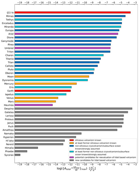 - Peale, S.J.; Cassen, P.; Reynolds, R.T. Melting of Io by tidal dissipation. Science 1979, 203, 892–894. [Google Scholar] [CrossRef]