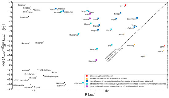 - Saxena, P.; Renaud, J.P.; Henning, W.G.; Jutzi, M.; Hurforda, T. Relevance of tidal heating on large TNOs. Icarus 2018, 302, 245–260. [Google Scholar] [CrossRef]