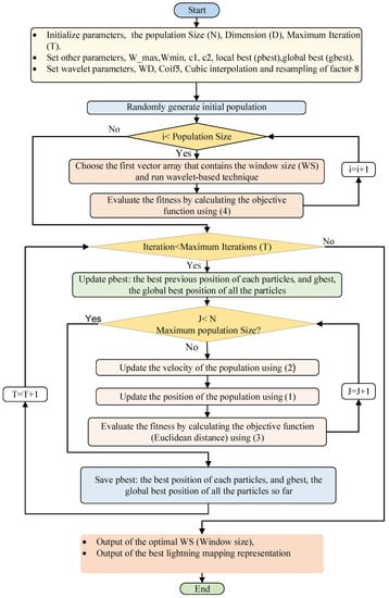 Flowchart of lightning mapping procedures using PSO-based algorithm.
