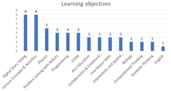 - Educational affordances related to the educational framework (type of activity) developed and used and the learning objectives aimed at smart toys: