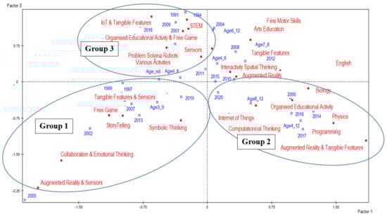The study of Lin et al. [44] aims to investigate the effects of didactic approaches on guiding early childhood children to learn computational logic and programming concepts. A teaching methodology was designed to develop the students’ cognitive skills, which adopts the learning approach based on the smart toy through the Tangible User Interface and aiming to enhance students’ learning performance and interests.
