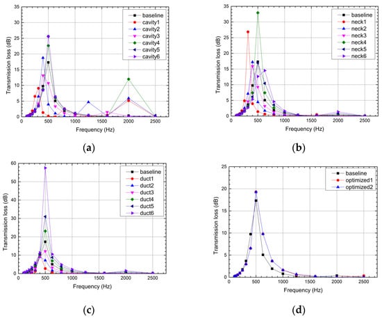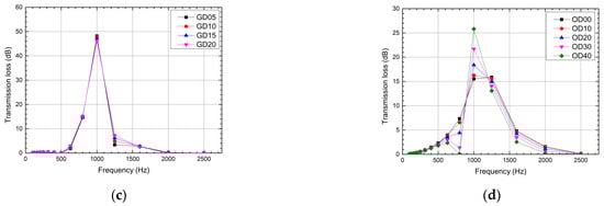 - In different arrays in series and parallel dispositions of HRs, the transmission loss of resonators increased up to 256.3% and 111.27% at resonance frequencies of 500 Hz and 1000 Hz. The serial disposition of two HRs to attain noise attenuation at 500 Hz and 1000 Hz shows that a soundproof panel design for sound attenuation at multiple resonance frequencies is feasible. However, it is also observed that, for more effective traffic noise reduction, the noise attenuation performance between the two target frequencies needs to be improved.