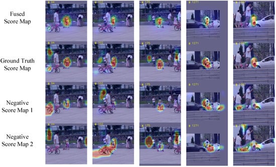 Providing new target information only enhances the responses of target tracking, but false responses are still caused by similar objects. As illustrated in the ground truth score map row of Figure 1, even though the people have different appearances, they receive high responses in the score map. When the real tracking target crosses or is occluded by these objects, the tracking is easily lost with these interferences. It is also important to eliminate false responses.