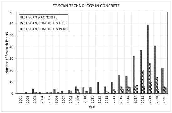 Evolution in the number of scientific publications related to computed tomography in concrete (2001–2021).