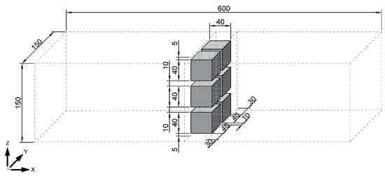 For this work, a total of 6 cubic specimens of 40 mm sides were scanned. These specimens were cut from a prismatic piece of 150 × 150 × 600 mm (Figure 2). Therefore, the microstructure of all the specimens is expected to be very similar.
