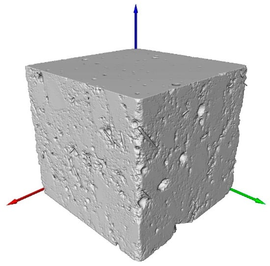At present, two traditional techniques are used to analyze porosity in concretes, namely nitrogen adsorption and mercury-intrusion porosimetry (MIP) [29,30,31,32]. These techniques can measure really small pore sizes, down to 10 nm or even less, but show important limitations. They can only provide the pore-size distribution, but neither their spatial distribution nor their morphological parameters. Moreover, the information that they provide is related to the open porosity and not to the closed one, which is more interesting when studying this phenomenon.