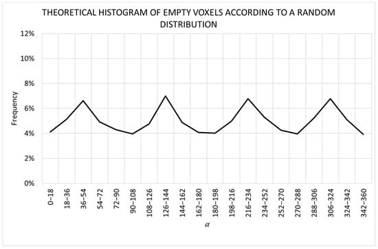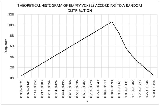 Circumferential test. Theoretical histogram of empty voxels according to a random distribution.