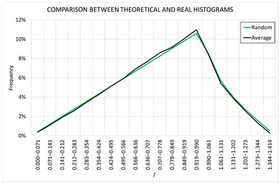 Radial test. Comparison between real and theoretical histograms.