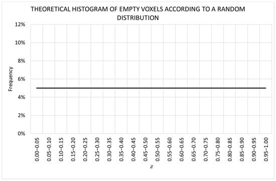 Vertical test. Theoretical histogram of empty voxels according to a random distribution.