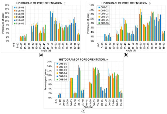 Histograms of pore orientation of the angles , (a) (b) and (c).