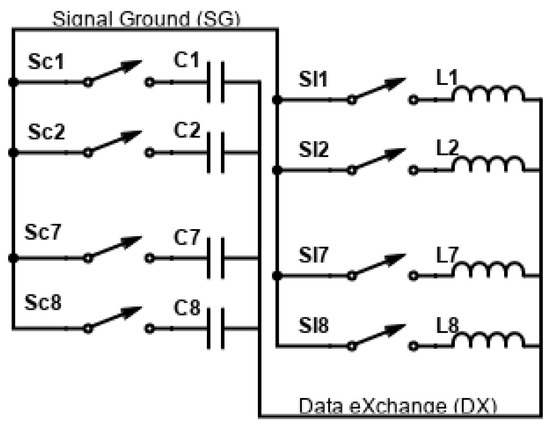 To generate disturbance on the line, a coil, or capacitor, was connected to the line. The schematic on Figure 5 shows the idea of connection. For switches, the authors chose transistors with high peak current and fast opening time. To provide many configuration options, components as shown in Table 1 were chosen. Later in the article, these components will be named LC terminators.