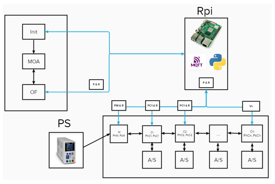 It has been decided to apply intelligent computing and hardware in the loop techniques due to several difficulties in bus prototyping discussed in Section 2. The proposed scheme of the optimization method is present in Figure 8. The HIL part of the system is composed of n modules (one master unit and clients), where all modules are connected with one twisted pair of cables and a wireless network to remove the influence of auto-addressing signals. The optimization process is managed by the software created employing MATLAB and Raspberry Pi platforms. The authors decided to use the Global Optimization Toolbox for the implementation of evolutionary and particle swarm algorithms. More details are given and described in Section 5.2.