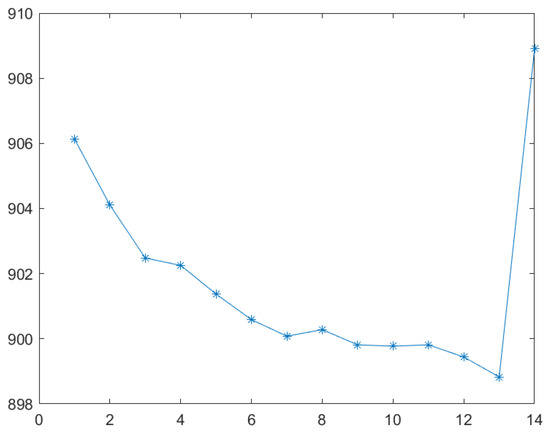 This technique was chosen to test the parameters of the algorithm with different configurations; some researchers use PSO with fixed parameters where self-adjustment weight () and social adjustment weight () are set to 2 [33,38]. The adopted methodology used close values at and at , where is calculated to and . Interpolating results from Section 6, the authors conclude that the decision was the right one. The interpolated quality parameters of PSO also suggest that the default value of is closer to optimal than 2.