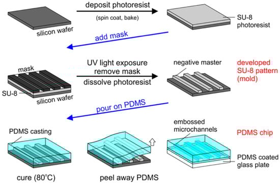 - McDonald, J.C.; Duffy, D.C.; Anderson, J.R.; Chiu, D.T.; Wu, H.; Schueller, O.J.; Whitesides, G.M. Fabrication of microfluidic systems in poly(dimethylsiloxane). Electrophoresis 2000, 21, 27–40. [Google Scholar] [CrossRef]