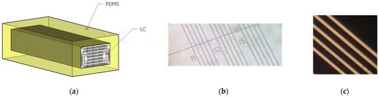 PDMS channels to be filled with a nematic LC are fabricated by the cast and moulding technique involving several technological phases as shown in Figure 5 and described in ref. [31].