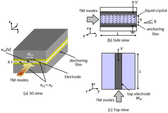 - Tripathi, U.S.; Rastogi, V. Liquid Crystal Based Rib Waveguide. J. Lightw. Technol. 2020, 38, 4045–4051. [Google Scholar] [CrossRef]