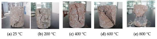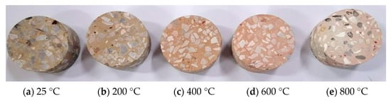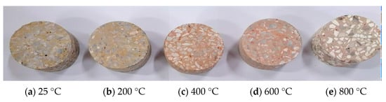 In this section, the changes of the basic physical parameters including the concrete mass, wave velocity, and color under various high temperatures (200, 400, 600, and 800 °C) were observed.