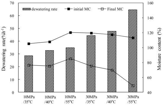 The mean MCs and standard deviations of six conditions after 1 h SuCO2 dewatering.