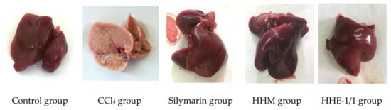 2.4. Effects of HHM, HHE-1/1 on Histopathology of the Liver