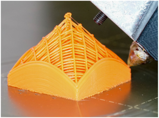 - Gubser, M. FDM Printing of Overhangs without Support Material. Master’s Thesis, ZHAW, Winterthur, Switzerland, 2020. [Google Scholar]