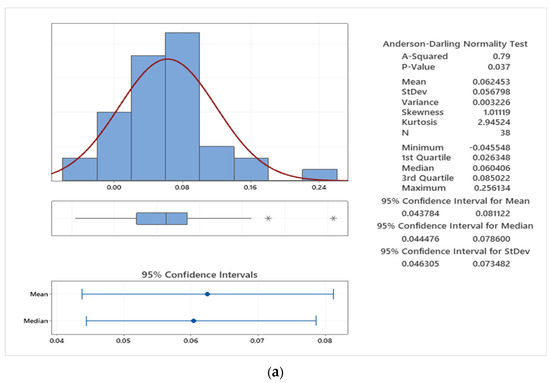 Analysis of annual growth rate for electricity consumption. (a) Shows the results of Anderson-Darling normality test and summarize the statistical parameter for annual growth rate from 1980–2018. (b) Shows the fluctuation of annual growth rate and red dot line presents the average value that used in the simulation.