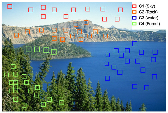 The main hypothesis of the proposed methodology is the automatic texture dictionary generation, which represents their own elements contained in the scenes such as water, foliage, clouds, rocks, sand, etc. (see Figure 4). It depends on the self-organization of the information through the k-means clustering algorithm. Each block in the methodology is described in detail below.