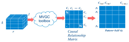 - Wiener-Granger Causality analysis: An entry in the matrix has a size of for each image in the database. This input will be the one that feeds the CWG analysis, as shown in Figure 6. The causality analysis was calculated with the MVGC causality toolbox [48].