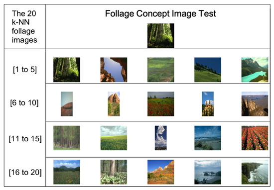 Figure 17. Retrieval results related to the concept of follage. - Rock Element: Finally, for the rock element, Figure 18 provides an example of recovery of 20 scenes recovered; from the figure, it can be seen that 17 out of 20 images.