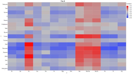 Heatmap of correlation between organoleptic plant growth characteristics and nutrient content of the AGPM.
