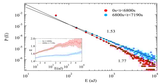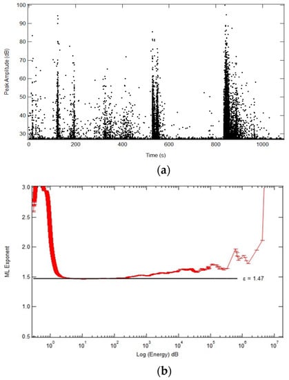 - Salje, E.K.H.; Planes, A.; Vives, E. Analysis of crackling noise using the maximum-likelihood method: Power-law mixing and exponential damping. Phys. Rev. E 2017, 96, 042122. [Google Scholar] [CrossRef]