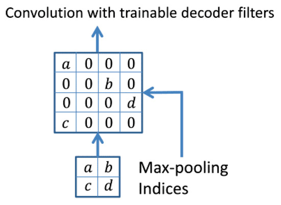 SegNet decoder uses the max-pooling indices to upsample (without learning) the feature maps (adapted from [9]).