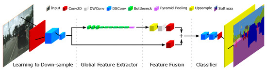 - Poudel, R.P.K.; Liwicki, S.; Cipolla, R. Fast-SCNN: Fast Semantic Segmentation Network. arXiv 2019, arXiv:cs.CV/1902.04502. [Google Scholar]