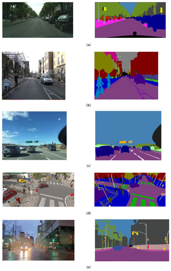 - Cordts, M.; Omran, M.; Ramos, S.; Rehfeld, T.; Enzweiler, M.; Benenson, R.; Franke, U.; Roth, S.; Schiele, B. The Cityscapes Dataset for Semantic Urban Scene Understanding. In Proceedings of the 2016 IEEE Conference on Computer Vision and Pattern Recognition (CVPR), Las Vegas, NV, USA, 27–30 June 2016; pp. 3213–3223. [Google Scholar]