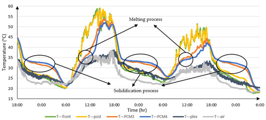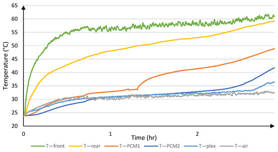 - The liquid PCM did not absorb large amounts of heat, and the panel overheated. The hybrid panel showed higher temperatures, and the efficiency was reduced.