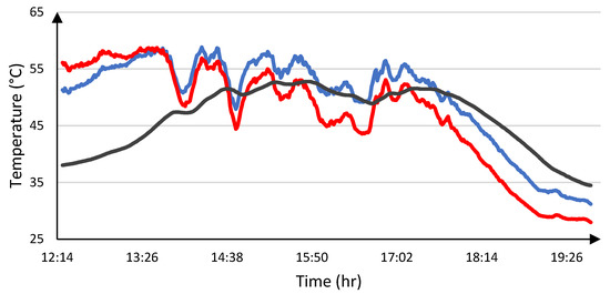 | T Average (°C) | T Peak (°C) | Ramping Time (Minutes) | Average Solar Radiation (W/m2) | |