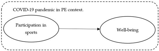 Third, higher levels of PA moderate the relationship between COVID-19 cases and deaths (e.g., [1,2,4]), supporting the importance of analyzing the impact of COVID-19 related changes on mental health (i.e., well-being). For the above reasons, it was expected that insofar as it pertains to PA, the COVID-19 pandemic might have affected mental health, and an increase in PA behaviors might contribute to individual well-being. Therefore, hypothesis H3 is as follows: Participation in sports positively affects well-being (showed in Figure 3).