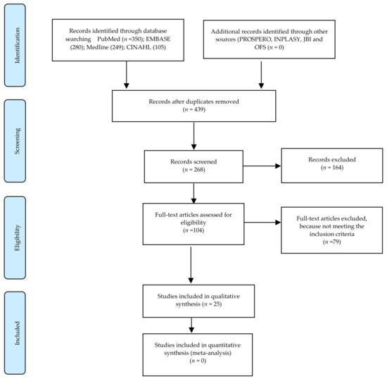 Initially considered to be potentially eligible for inclusion were 104 studies but after inspection of the full papers, 79 were excluded for not meeting the inclusion criteria for this umbrella review. Results were expressed as descriptive statistics because of the significant heterogeneity in the published data. A total of 25 systematic reviews were therefore included in this study. The included systematic reviews involved a total of 80,840 patients. All the published data described patients evaluated from 2006 to 2021 (Table 2).