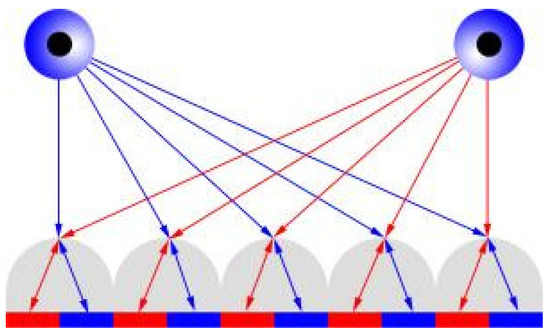 Plenoptic (or light-field) cameras present a different architecture from conventional cameras. This difference lies in the fact that conventional cameras are composed of the main lens and an image sensor, whereas plenoptic cameras have a microlens array between the image sensor and the main lens of the camera. This microlens array allows the light field to be captured from various points of view, forming a 4D light field with a 2D image, so that it is possible to estimate the depth of the scene [29]. This estimate of the depth is obtained by using the redundancy created by multi-view geometry, where a 3D point is projected onto the image several times.