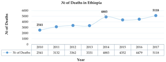 Number of deaths recorded in Ethiopia from 2010–2017.