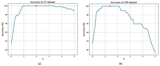 where is a suitable constant. In the case of CT scans, we set , while, for CXRs, provides good results.