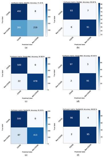 In order to attempt to effectively sort out the above problems, the efforts of the research community are, for the most part, focused on exploiting Artificial Intelligence (AI) approaches for implementing automatic image classification [13]. Specifically, Deep Learning (DL) algorithms—a branch of machine learning, which uses architectures that possess many layers of processing [14]—have been massively used to detect CXRs [15] and CT scans [16,17] of infected lungs. In particular, Deep Neural Networks (DNNs) have been widely employed for this purpose [18,19].