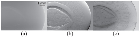 Highly intense synchrotron radiation X-rays can solve this problem [27,28,29,30,31]. The authors succeeded in X-ray CT with an imaging time on the order of milliseconds by using a third-generation synchrotron radiation source and rotating samples at high speed [27,28,29]. The experiments were performed at the experimental station BL28B2 at SPring-8, a large synchrotron radiation facility. Third-generation synchrotron radiation sources such as SPring-8 are capable of producing much more brilliant X-rays (i.e., a high-intensity X-ray beam from a small light source) than laboratory X-ray sources. The small size of the light source allows us to use high-spatial-coherence X-rays, which is suitable for X-ray phase-contrast imaging. The advantage of this imaging is that it is more sensitive than X-ray absorption imaging as described in Section 2.1. With this imaging, the experimentally obtained refractive index decrement for X-rays is taken as the physical quantity in Equation (1).